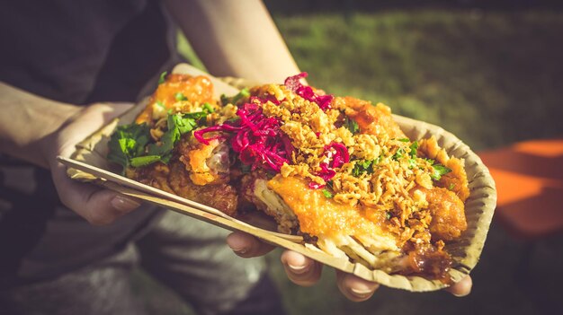 Crispy fried fish served with traditional accompaniments.
